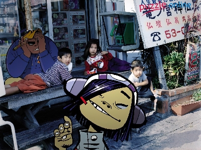 dzieci, Gorillaz, butka telefoniczna