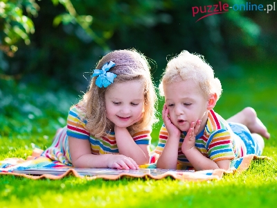 Dzieci, Park, Dziewczynka, Chłopczyk, Kocyk