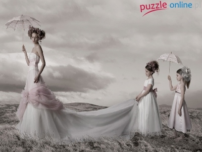 Puzzle Dzieci, Panna, Młoda, Parasolki