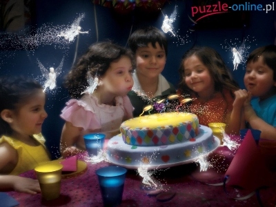 Puzzle Dzieci, Urodziny, Tort, Wróżki