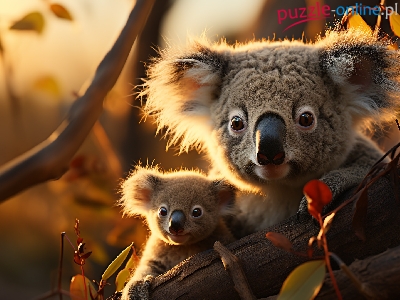 Drzewa, Mama, Koala, Dziecko, Gałązki, Konar