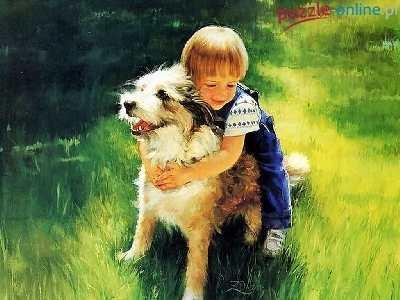Puzzle Zabawa, Dziecko, Pies