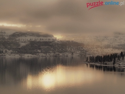 Puzzle Dzień, Zima, Pochmurny, Jezioro