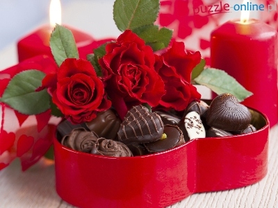 Róże, Dzień, Kompozycja, Świece, Czerwone, Słodycze, Kobiet