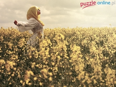 Puzzle Łąka, Dziewczyna, Kwiaty