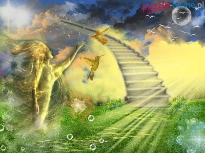 Puzzle Dziewczyna, Schody, Łąka, Duch