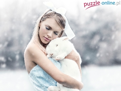 Puzzle Biały, Dziewczyna, Królik
