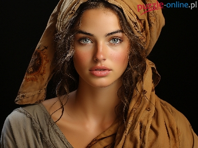 Puzzle Ciemne tło, Chusta, Dziewczyna