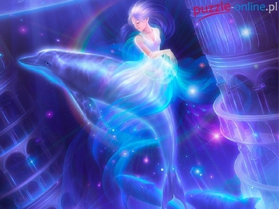 Puzzle Delfin, Dziewczyna, Woda