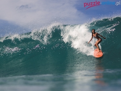 Puzzle Dziewczyna, Morze, Fala, Windsurfing