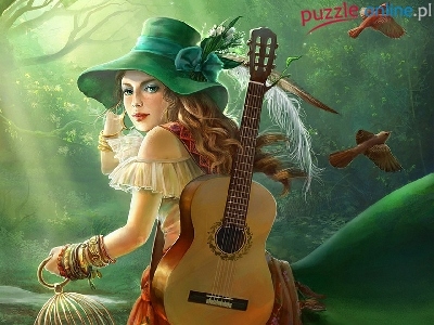 Puzzle Kapelusz, Dziewczyna, Gitara