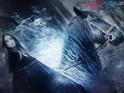 Puzzle Koń, Dziewczyna, Drzewa