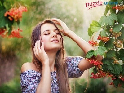 Puzzle Krzewy, Dziewczyna, Deszcz