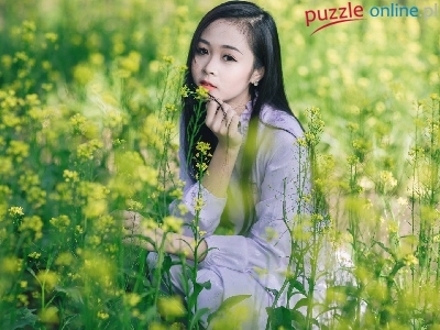 Puzzle Kwiaty, Dziewczyna, Łąka
