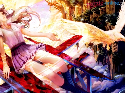 Puzzle Miasto, Dziewczyna, Ptak