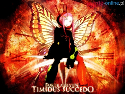 motyl, dziewczyna, zegar, Eureka 7, skrzydła, napisy