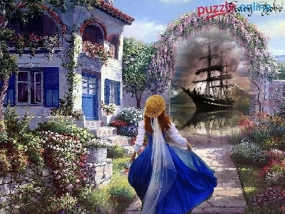 Puzzle Dziewczyna, Dom, Ogród, Statek