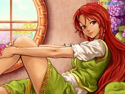 Puzzle Okno, Dziewczyna, Kwiaty