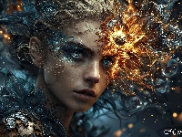 Ogień, Dziewczyna, Spojrzenie, Grafika AI