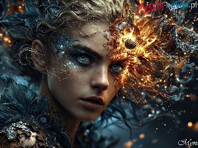 Puzzle Ogień, Dziewczyna, Spojrzenie, Grafika AI