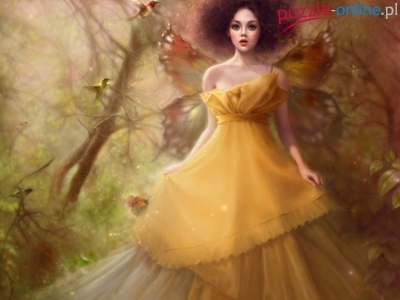 Puzzle Suknia, Dziewczyna, Las