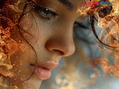Puzzle Ogień, Dziewczyna, Twarz, Grafika AI