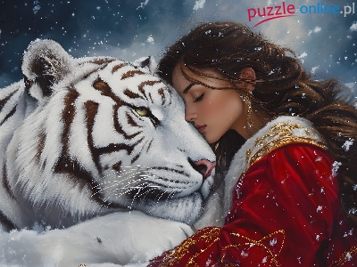 Biały, Dziewczyna, Tygrys, Płaszcz, Czerwony