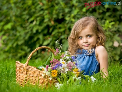 Puzzle Łąka, Dziewczynka, Kwiaty