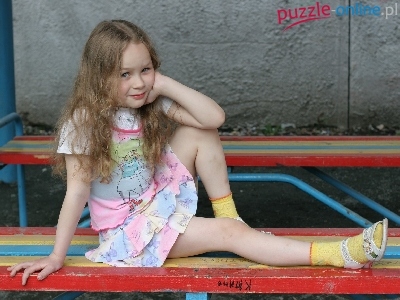 Puzzle Ławka, Dziewczynka, Uśmiech
