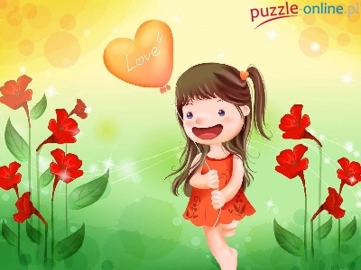 Puzzle Balonik, Dziewczynka, Kwiaty