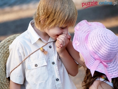Puzzle Dziewczynka, Dzieci, Chłopiec, Kapelusze