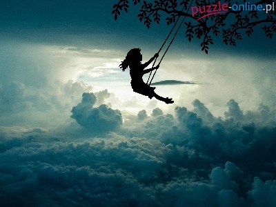 Dziewczynka, Fantasy, Niebo, Chmury, Huśtawka
