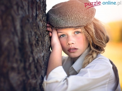 Puzzle Czapka, Dziewczynka, Drzewo