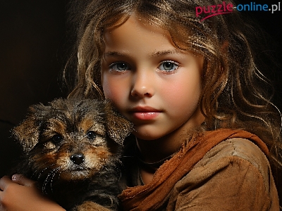 Dziecko, Dziewczynka, Długowłosa, Szczeniak, Pies