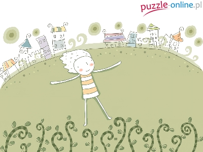 Puzzle Łąka, Fantasy, Dziewczynka, Miasteczko