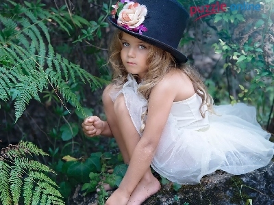 Puzzle Kapelusz, Dziewczynka, Paprocie