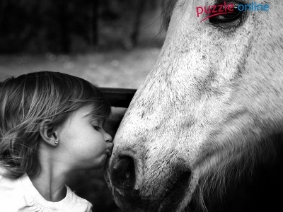 Puzzle Koń, Dziewczynka, Buziak