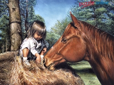 Puzzle Koń, Dziewczynka, Drzewa