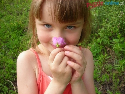 Puzzle Kwiatek, Dziewczynka, Uśmiech