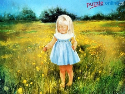 Puzzle Łąka, Dziewczynka, Kwiatuszki, Donald Zolan