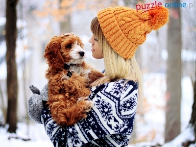 Puzzle Las, Dziewczynka, Piesek