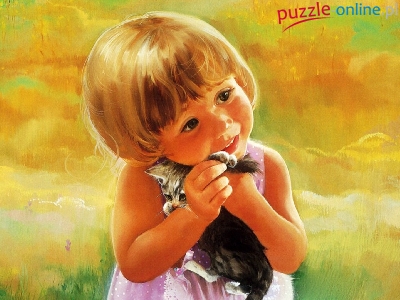 Puzzle Mały, Dziewczynka, Kotek