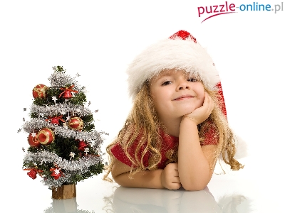 Narodzenie, Dziewczynka, Mikołaja, Choinka, Boże, Ustrojona, Czapka