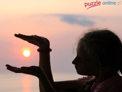 Puzzle Dziewczynka, Zachód Słońca, Dłonie