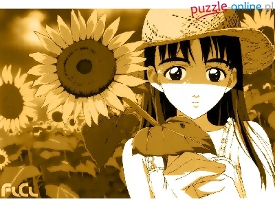 Puzzle dziewczynka, Fully Coolly, słoneczniki, kapelusz