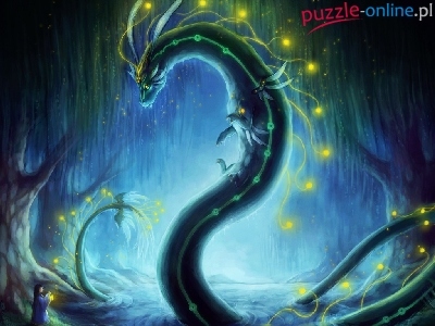 Puzzle Dziewczynka, Jaskinia, Smok, Światło