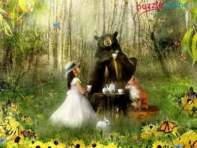 Puzzle Zwierzęta, Dziewczynka, Las