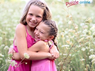 Puzzle Dziewczynki, Dwie, Małe, Łąka