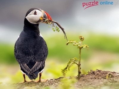Puzzle Dziób, Maskonur, Czerwony, Roślinka