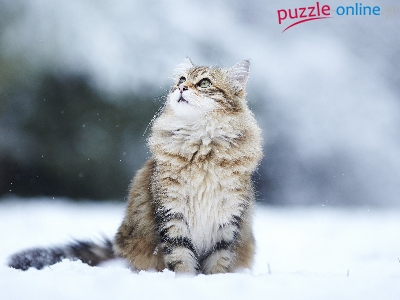 Puzzle Śnieg, Kotek, Ździwienie, Zima